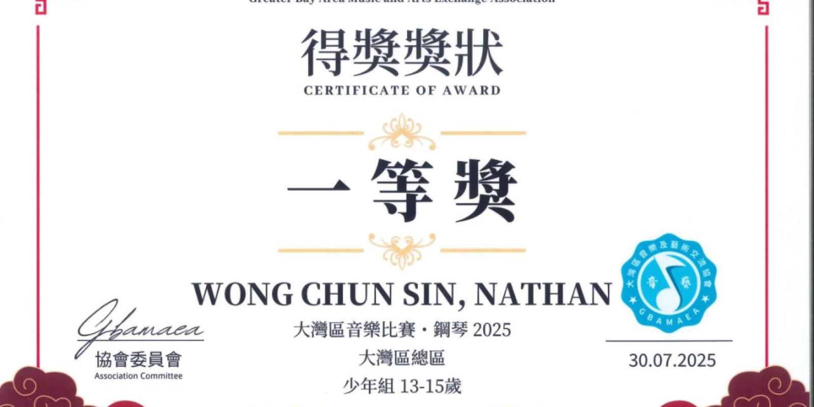 大灣區音樂比賽 鋼琴組2025