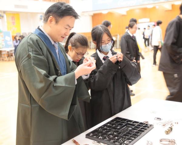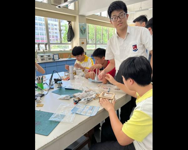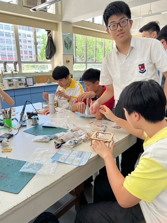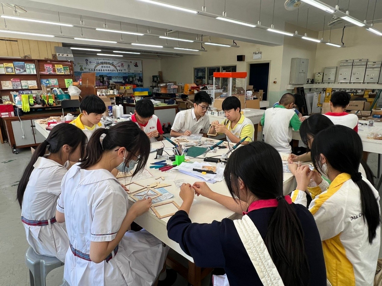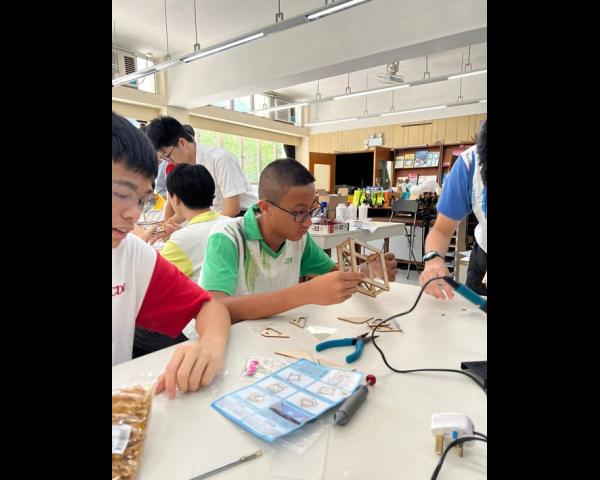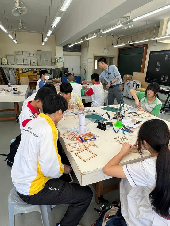 在中三級數學課堂中,同學於設計與科技(DT)室親手製作浮空投影器,深入探索其運作原理。透過活動,同學推導浮空投影器各個面的大小與傾角之間的關係,並為手提電話設計特定高度的浮空投影器。此實踐活動不僅提升同學對數學與科技的理解,更激發創意與動手能力。
